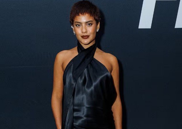 Bella Campos estreia cabelo curtinho e leva decote ao limite em evento de moda em São Paulo