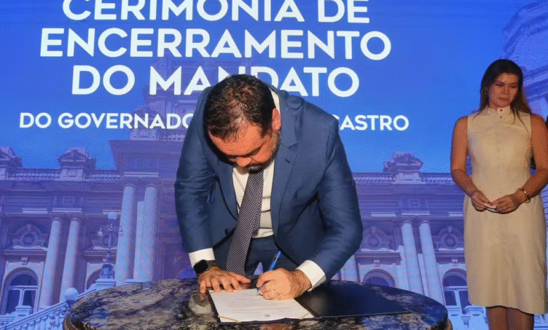 A cerimônia de encerramento do mandato foi realizada no Palácio Guanabara, sede do governo estadual, no início da noite. Castro começou o evento enumerando feitos de seu governo e anunciando que está de saída.