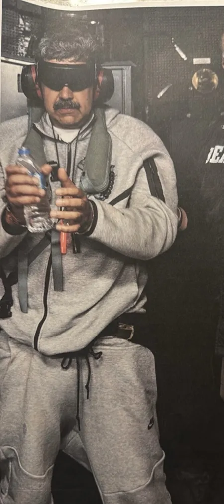 Pouco antes de falar com a imprensa, Trump publicou uma foto de Nicolás Maduro, que teria sido tirada após a prisão. Nela, o venezuelano aparece de óculos e abafadores de ruído, segurando uma garrafa, dentro do navio norte-americano USS Iwo Jima. Antes, a vice-presidente do país latino, Delcy Rodriguez, havia pedido uma prova de vida do casal venezuelano após denunciar o ataque.