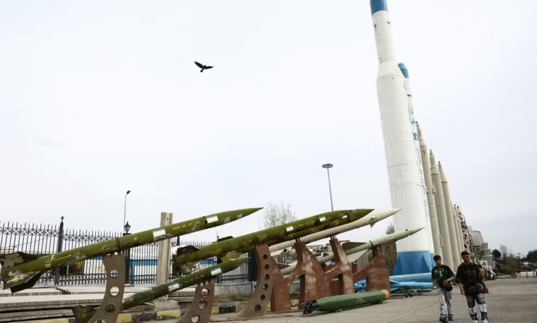 Mísseis iranianos expostos em um parque em Teerã, no Irã, em meio à guerra contra EUA e Israel contra o Irã, em 26 de março de 2026 – Imagem: Majid Asgaripour/Wana via REUTERS