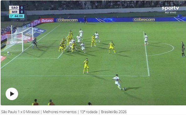 Lucca recebeu na ponta, esperou a ultrapassagem de Wendell e passou para o lateral dar uma assistência precisa para Luciano cabecear com força e balançar a rede. Daí em diante, o Mirassol ensaiou uma pressão em busca do empate, mas parou na força do sistema defensivo do São Paulo.