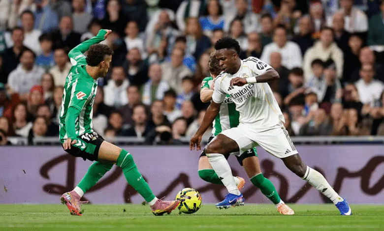 Vini em atuação pelo Real Madrid em jogo contra o Betis – Foto: Getty Images
